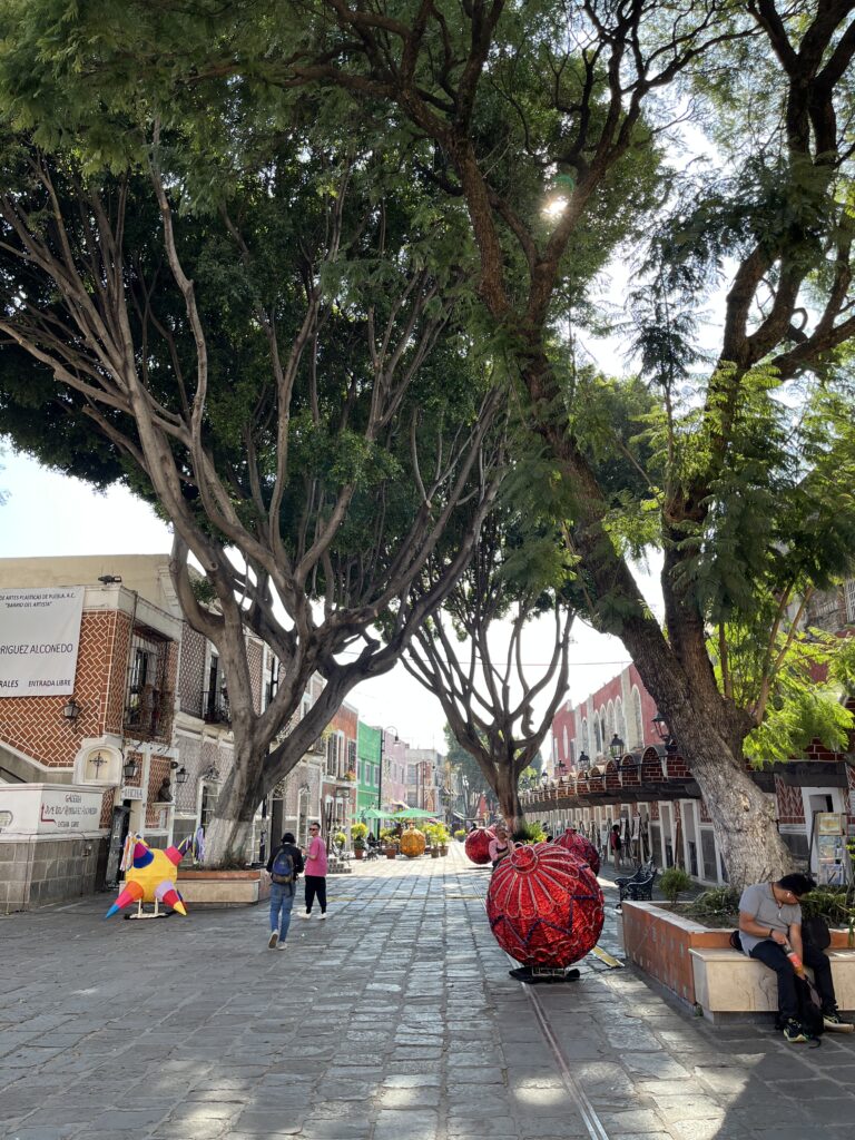 About 2.5 hours south of Mexico City, Puebla is Mexico’s fifth-largest city. Its streets are colourful, with preserved colonial architecture and striking monuments. It’s home to many artist studios where you can peek at the work of the many painters, sculptors, and potters. Here are a few highlights from our visit: