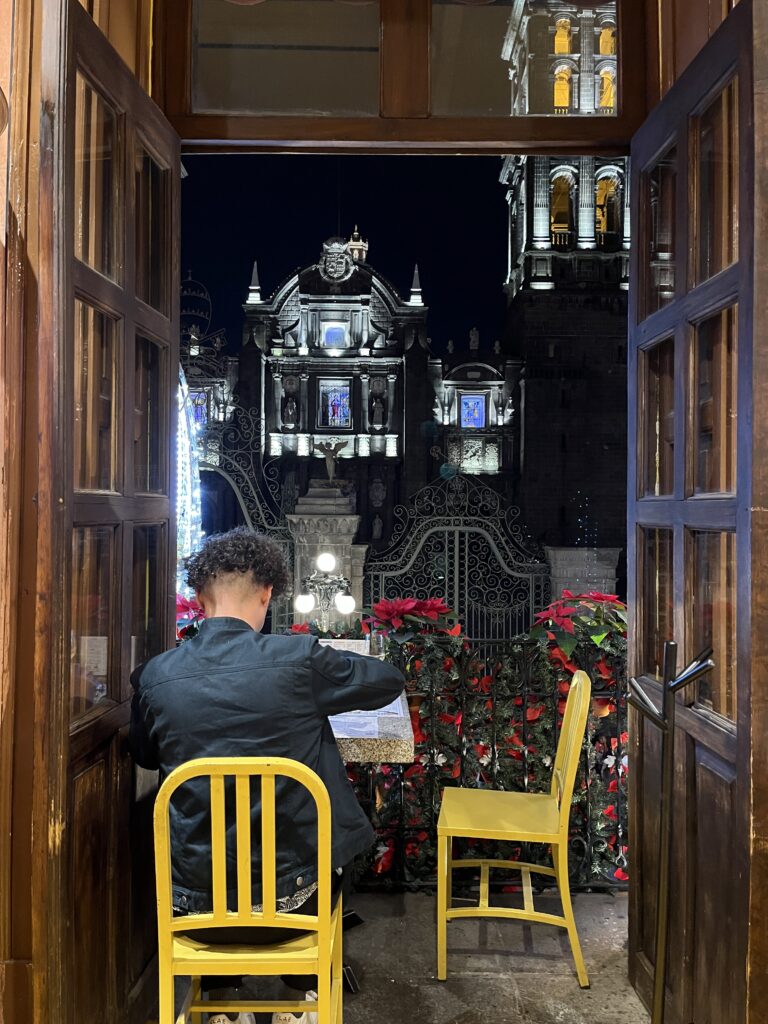 Our first day in Puebla was December 1st. On our way to dinner, we found the main square packed with locals admiring the newly installed Christmas decorations. We stumbled into the town’s annual tree lighting ceremony, with local celebrities and singers performing before and after the countdown. It was a magical moment, watching families enjoy the season’s lights.