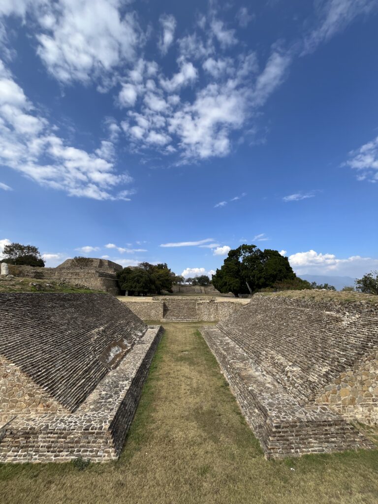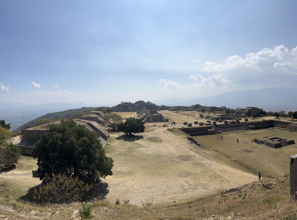 We also took a half-day trip to Monte Albán, the ancient Zapotec capital and UNESCO World Heritage site just outside Oaxaca de Juárez. Founded around 500 BCE and thriving until about 800 CE, it sits atop a mountain with panoramic views of the Oaxaca Valley. We wandered among grand plazas, pyramids, a ball court, tombs, and temples—a glimpse of a once-majestic metropolis.