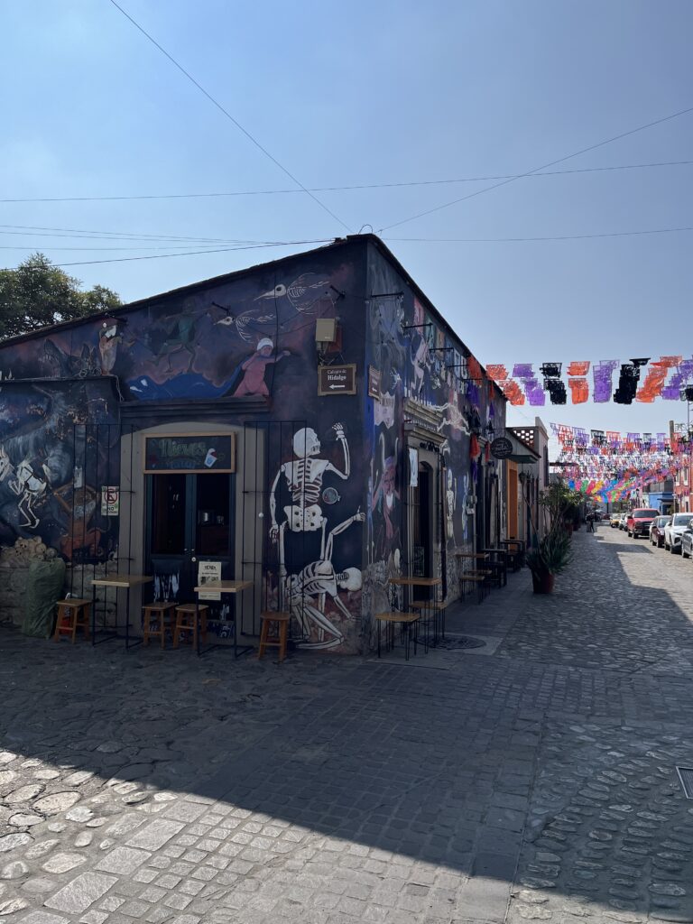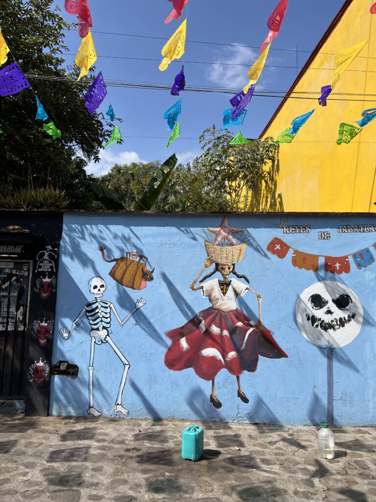 Oaxaca de Juárez has a high concentration of galleries and shops selling local craft. It’s fun to wander the centre and check out exhibitions. We spent hours admiring paintings, sculptures, and other handcrafted items, even knowing we wouldn’t be able to buy much because we had limited luggage space. Many markets around town feature artisans, who were friendly and generous in explaining their processes and sourcing, without being pushy. Some neighbourhoods also have an impressive concentration of radiant murals, making the daytime walks around the colourful streets of the city even more enchanting.